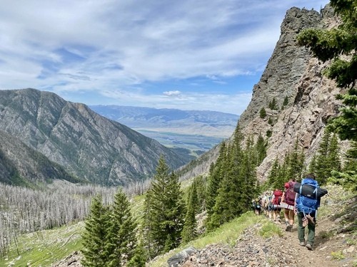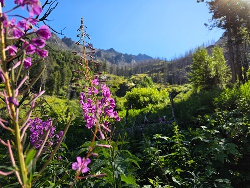 The Pine Creek Lake hike is located in Paradise Valley near Livingston. The trail climbs over 3,600 feet in just over 4.5 miles. After hiking through a burnt forest area, the climb begins up to two smaller mountain lakes before reaching Pine Creek. The views are stunning as the lake is nestled amidst spectacular sheer rock mountain peaks at nearly 9,200 ft. The 32-acre lake is fed by a cascade plunging in at the east end of the lake and is reported to be 170 ft deep.
